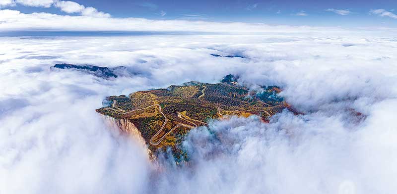 左權縣太行龍泉旅游區磅礴的云海漫過層林盡染的群山